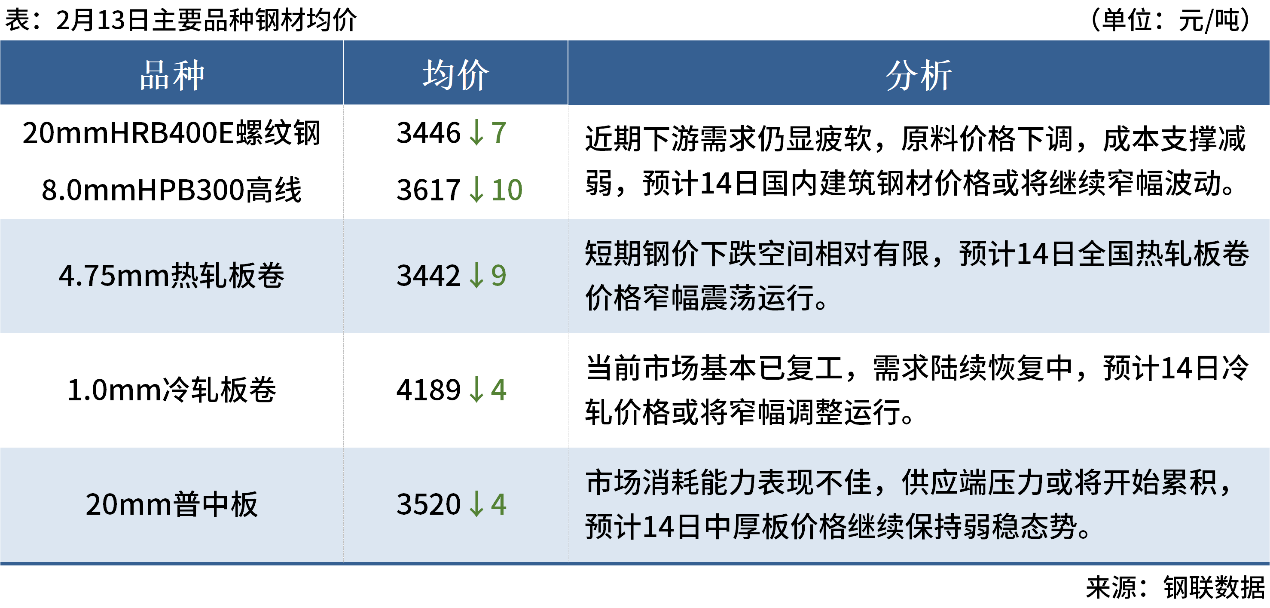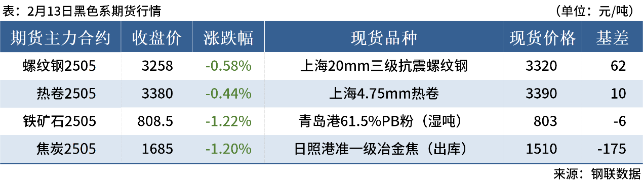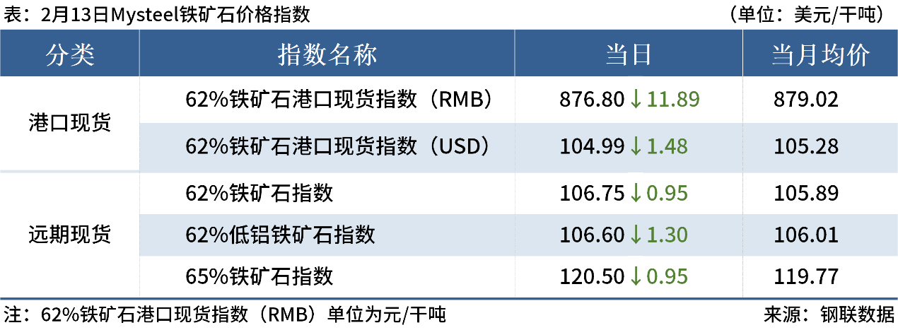 ◎2月13日,全國主港鐵礦石成交114.30萬噸,環(huán)比增12.1%;237家主流貿易商建筑鋼材成交5.08萬噸,環(huán)比增15.2%。